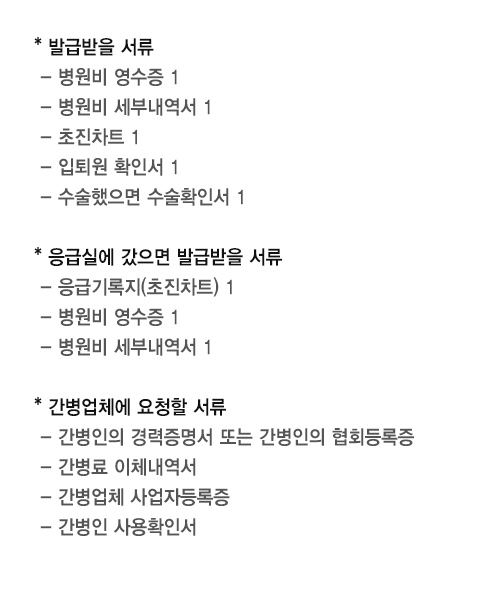 - 간병인의 경력증명서 또는 간병인의 협회등록증
